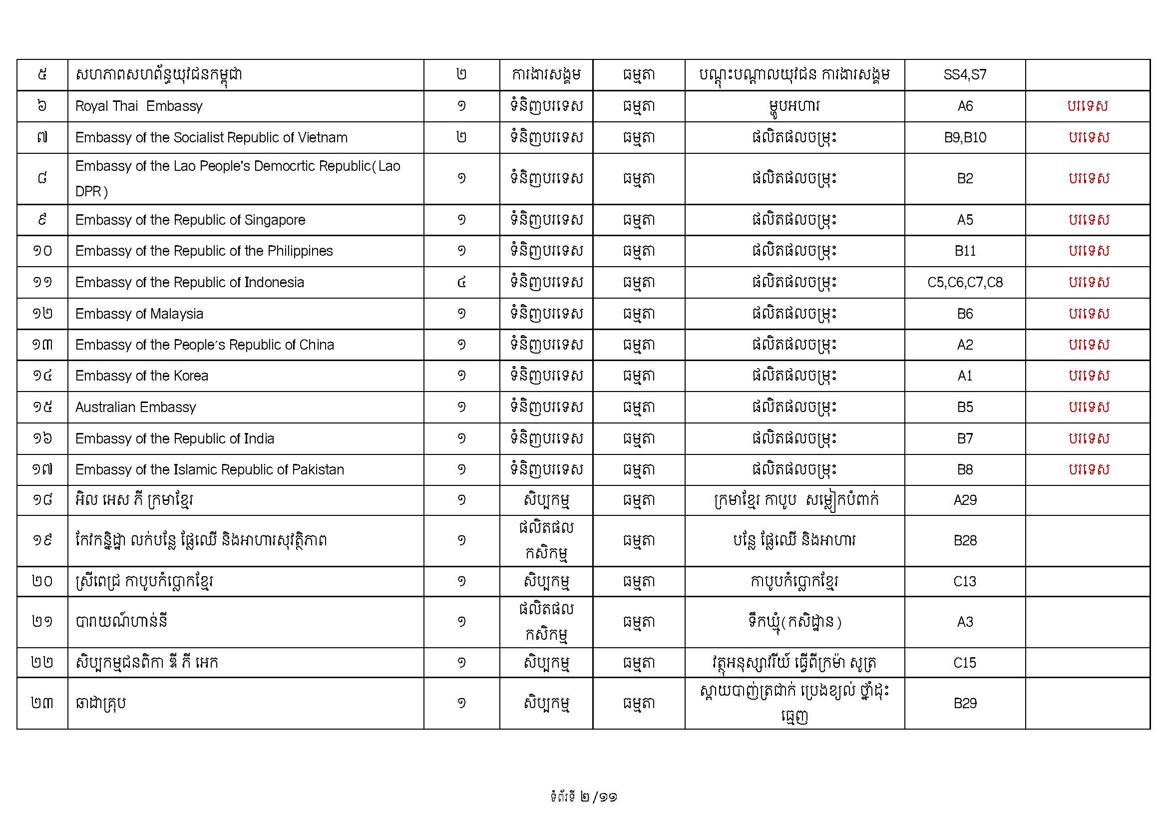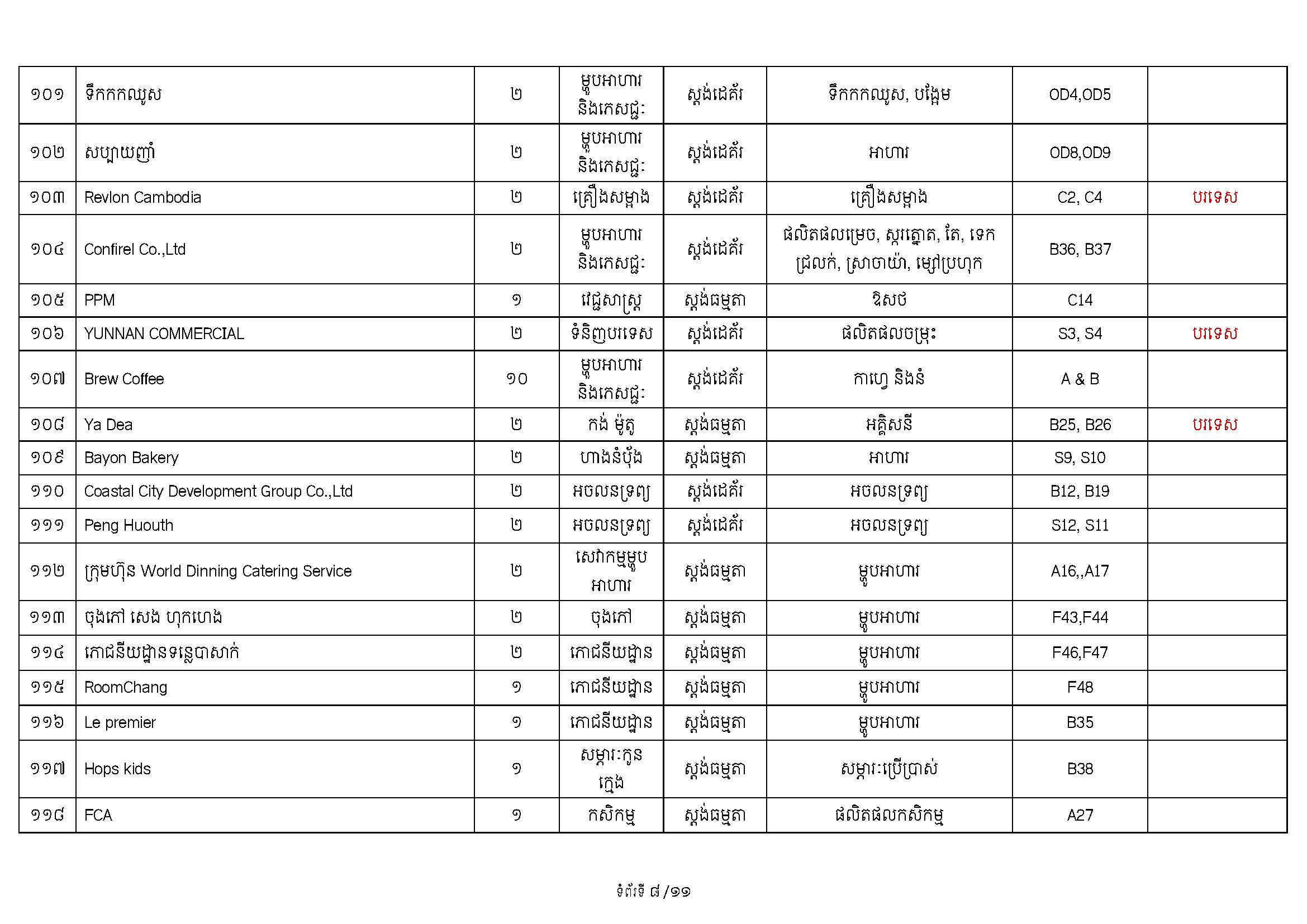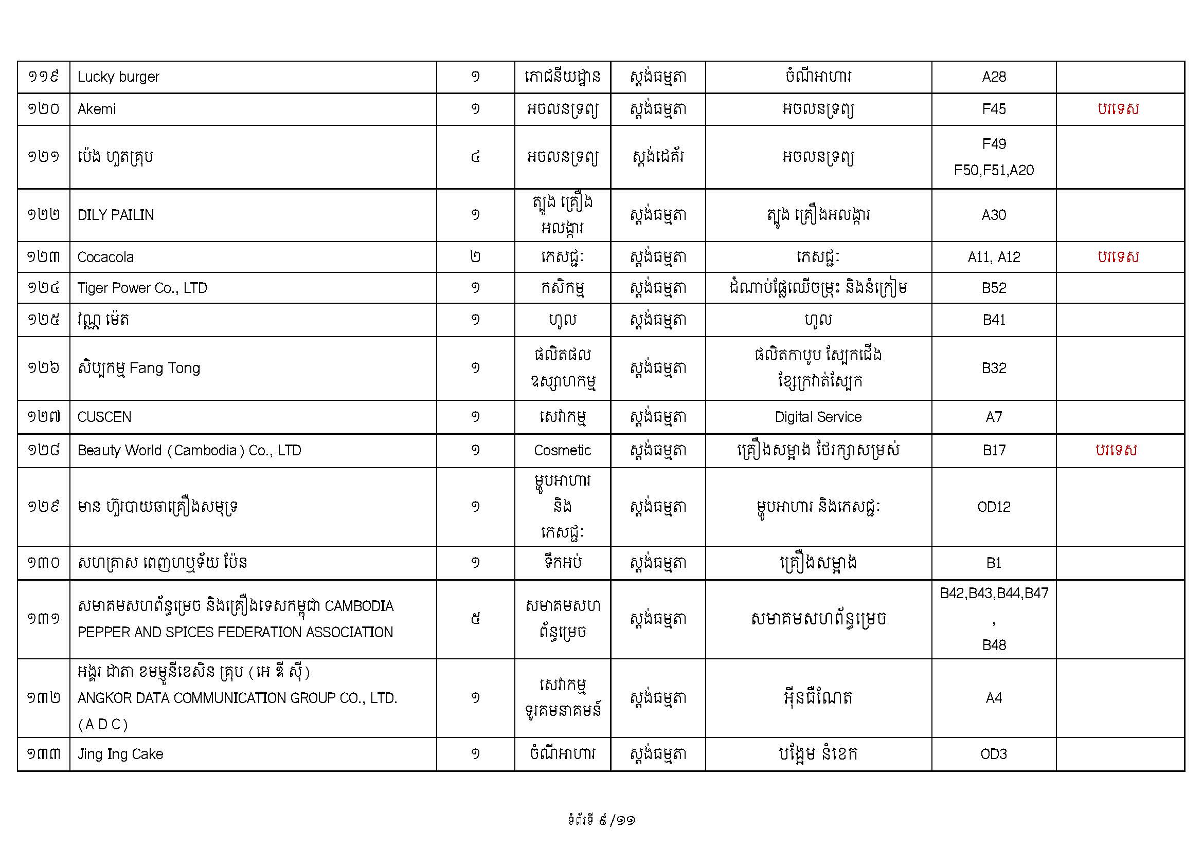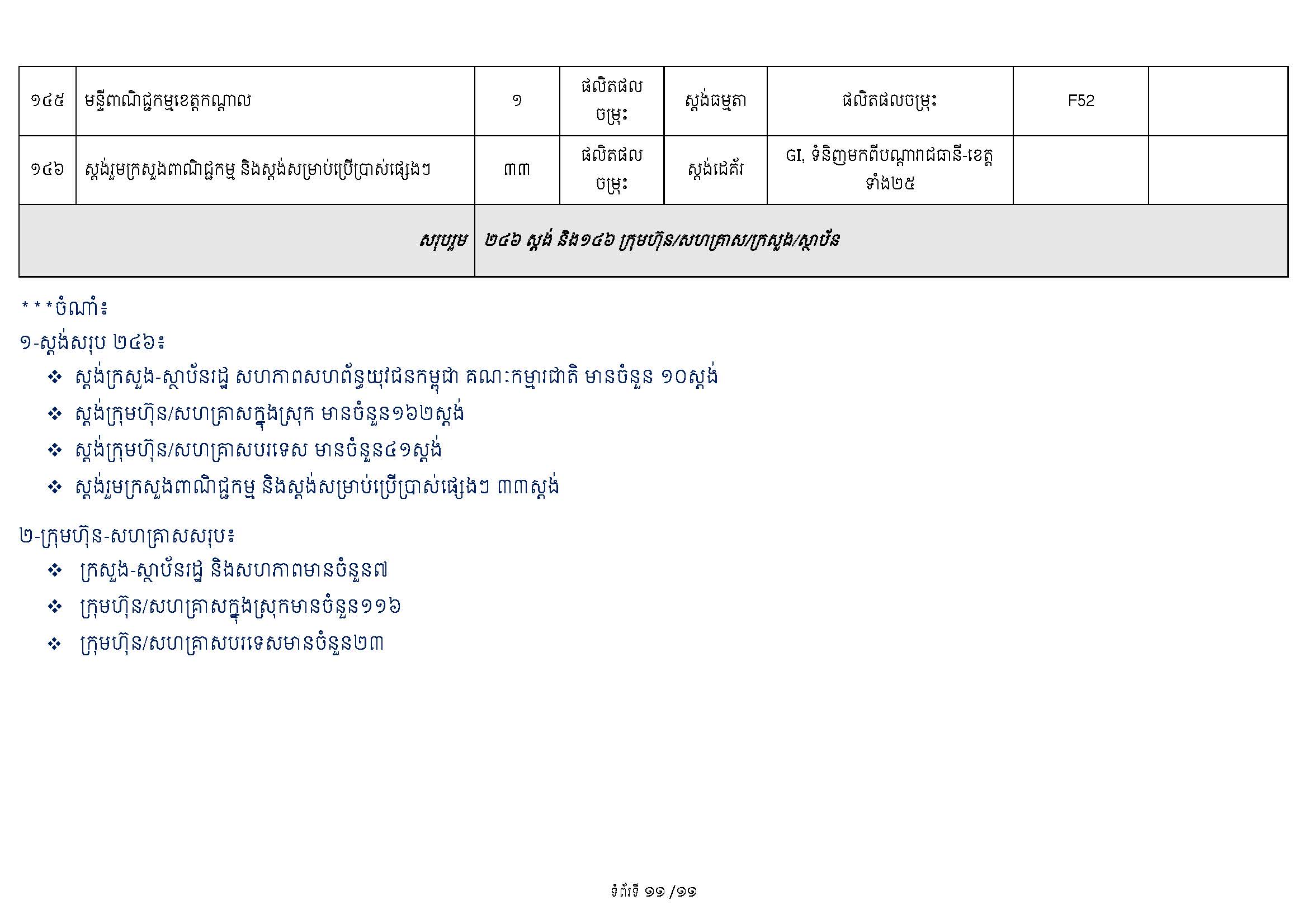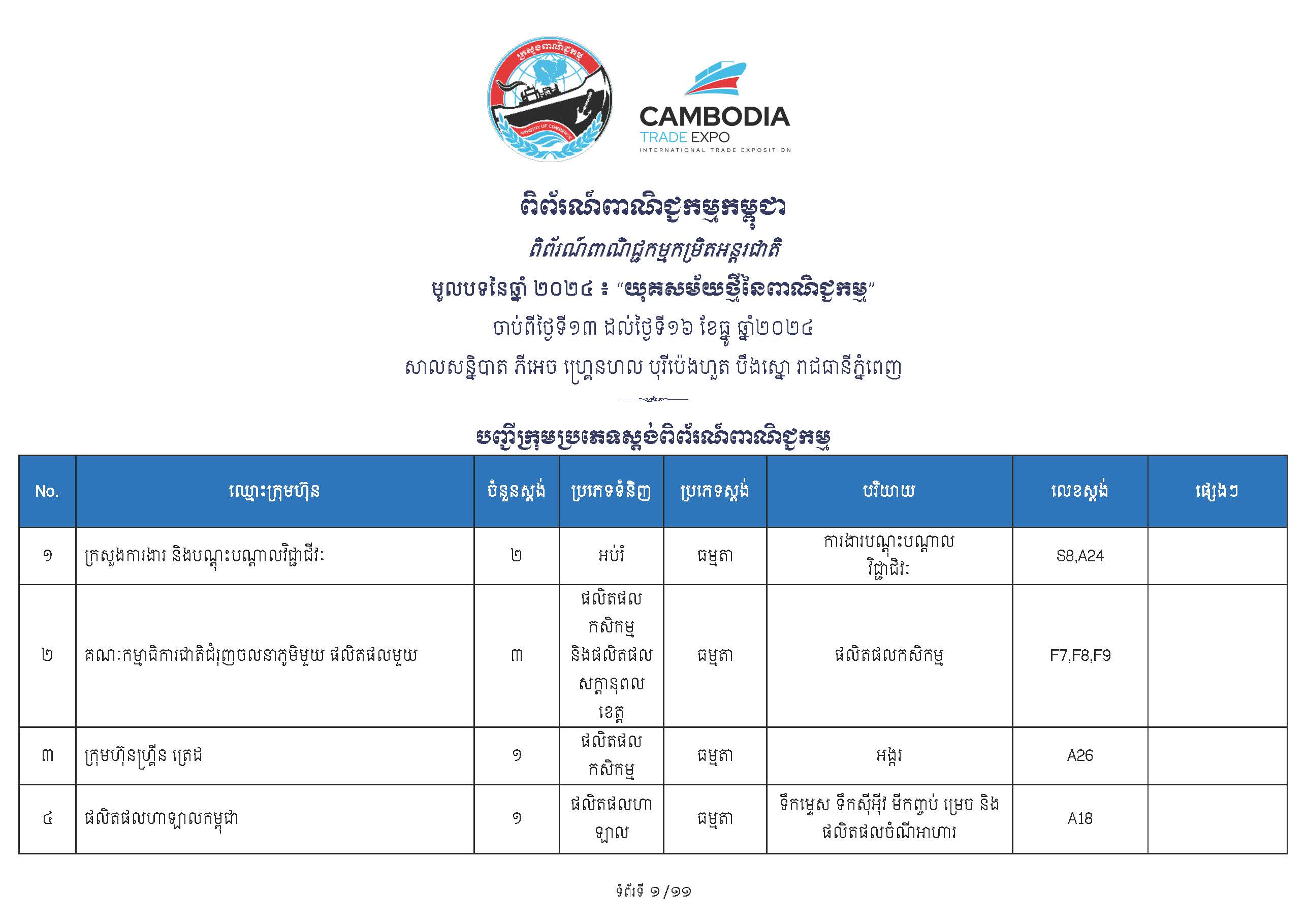 ទំហំនៃពិព័រណ៍៖ គណៈកម្មការបានរៀបចំស្តង់តាំងបង្ហាញសរុបប្រមាណ ២៥០ ស្តង់ ដែលរួមមាន៖ ស្តង់ និងផ្ទះរួមរបស់ក្រសួងពាណិជ្ជកម្ម (សម្រាប់ដាក់តាំងបង្ហាញផលិតផលសម្គាល់ភូមិសាស្ត្រទំនិញ [GI] និងទំនិញសក្តានុពលកម្ពុជា) ស្តង់របស់បណ្តាស្ថានទូតនានា ដៃគូអភិវឌ្ឍន៍ ព្រមទាំងស្តង់របស់ក្រុមហ៊ុនចម្រុះពីវិស័យឯកជន។