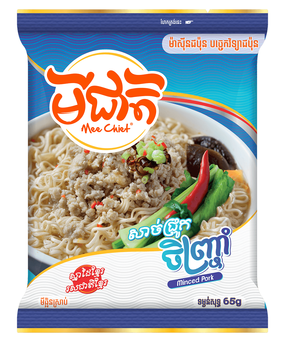- មីជាតិ : មីខគោគ្រឿងខាប់រសជាតិដើម, មីសាច់ជ្រូកចិញ្ចាំ, មីស៊ុបមាន់, មីម្ជូរបង្គា